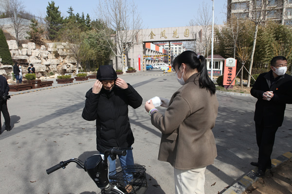 Ò»µ½ÉçÇø£¬ÔÚÉçÇøµÄ×éÖ¯°²ÅÅÏ£¬·Ö³ÉÁ½×é·ÖÍ·Ðж¯ ¡£µÚÒ»×é×ÔÔ¸Õß±³ÆðÅçºøµ½×¡ÃñÐ¡ÇøÏû¶¾ ¡£µÚ¶þ×é×ÔÔ¸ÕßÀ´µ½Ð¡Çø¿¨¿Ú£¬ÎªÊÂÇéÖ°Ô±¼°ÊÕ֧סÃñ·¢·Å¿ÚÕÖ ¡£Óöµ½¸öÌåûÓÐÅå´ø¿ÚÕÖµÄÐÐÈË£¬Á¢Âí¾ÙÐÐÌáÐÑ£¬Ö¸µ¼ÉçÇø×¡Ãñ´÷ºÃ¿ÚÕÖ£¬×öºÃ×ÔÎÒ·À»¤£¬²»Ó°ÏìËûÈË ¡£